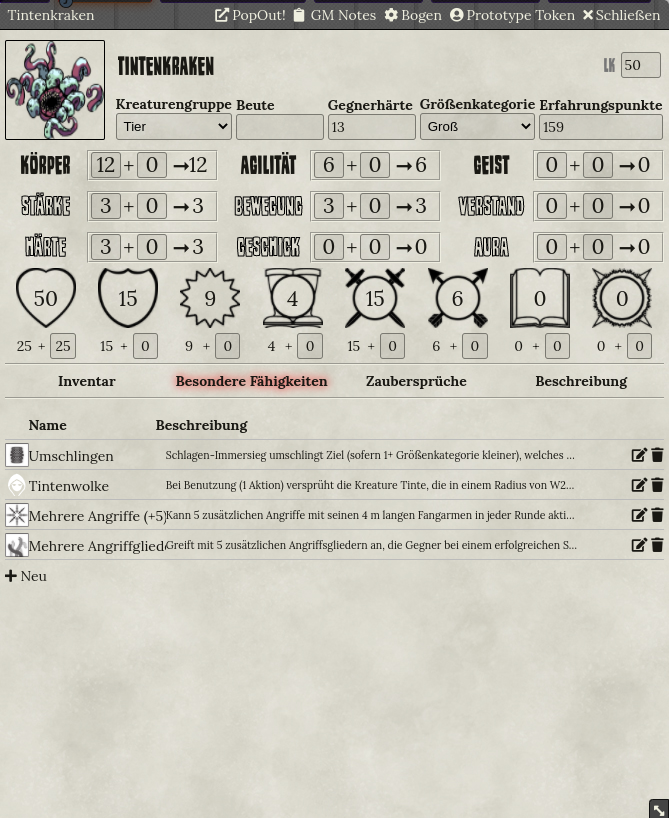 • allen Besonderen Kreaturenfähigkeiten aus dem GRW
