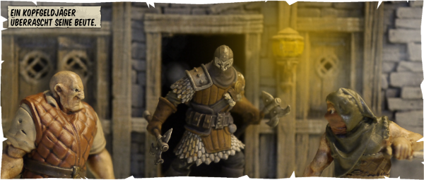„Seit dem Himmelsfall existiert die Gilde der Kopfgeldjäger nur noch in kümmerlichen, isolierten Resten. Dennoch genießen ihre Mitglieder weiterhin einen exzellten Ruf, auch wenn viele von ihnen mittlerweile oft in anderen Bereichen tätig sind…“